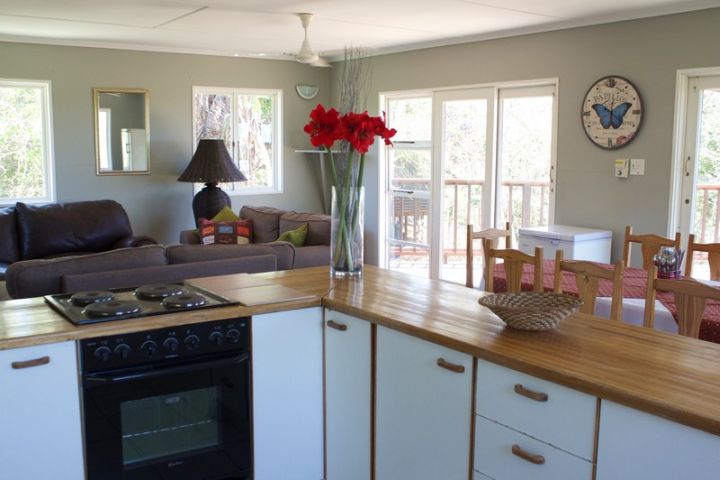 Die Familiencottages sind Hütten zur Selbstversorgung für bis zu vier Personen mit zwei Schlafzimmern. Beide Schlafzimmer sind klimatisiert und verfügen über ein eigenes Bad. Zusätzlich gibt es eine kleine Küche mit Mikrowelle, Induktionskochfeld, Kühl-/Gefrierkombination und Sitzecke und einen Grillplatz im Freien mit Blick auf den Küstenwald.